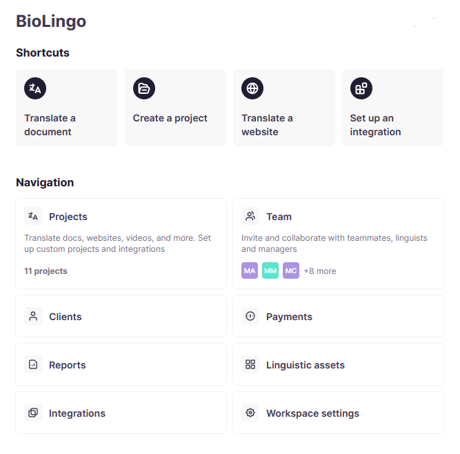 BioLingo translation platform capabilities